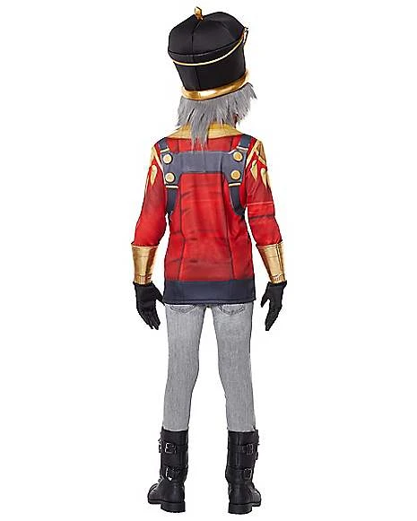 Show everyone how you get down in Tomato Town this Halloween when you dress up in this officially licensed Fortnite Crackshot costume. This legendary outfit is for those with a score to settle and the Crackshot won’t rest until the deed is done. This Crackshot costume includes its very own pair of gloves, black nutcracker hat, mask, and a red nutcracker shirt with golden details.
