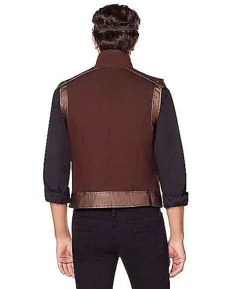 Add instant authenticity to your steampunk-inspired look with this vest. This high-quality vest features front zipper and button closures, a mix of earthy brown materials, and gold buttons. This steampunk vest is the perfect blend of function and fashion.