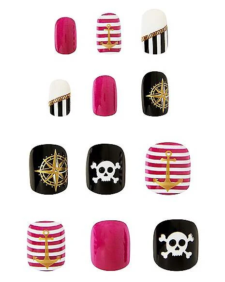 Ahoy, matey! Complete your pirate costume with these incredible press on nails! Featuring 12 different styles, these fake fingernails will have you ready to sail the seven seas.