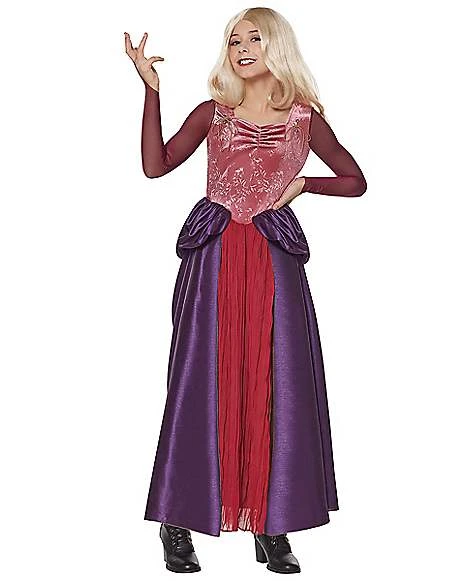 Sing a spellbinding song this Halloween as the fair and famous Sarah Sanderson! Join Winifred and Mary as you dance around in Sarah’s signature dress, which features pink fabric at the top, while the skirt flows out into lovely red and purple layers. The lace-up chest and bold red sleeves help complete the look in spellbinding fashion. Any Hocus Pocus fan will be dying to have this Spirit exclusive costume!
