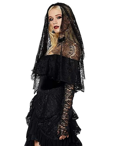 Complete your Gothic look with this black lace veil! You will look mysterious and sexy all at the same time.