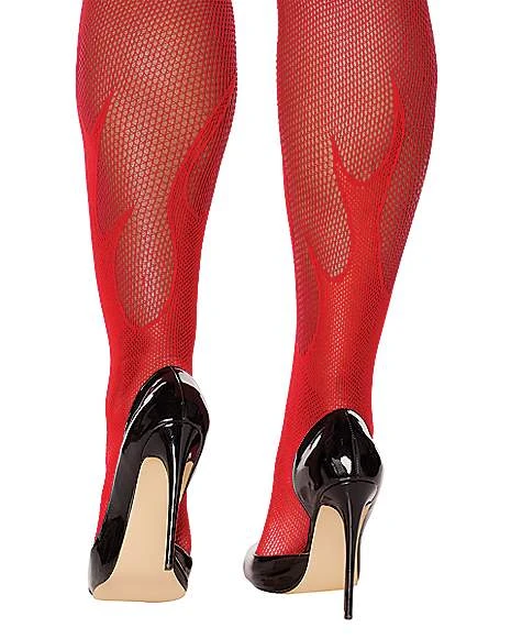 You’ll look fire this Halloween when tossing on these red and racy fishnet stockings! Flame details that run up your legs will add a devilish flair to your fiery Halloween look.